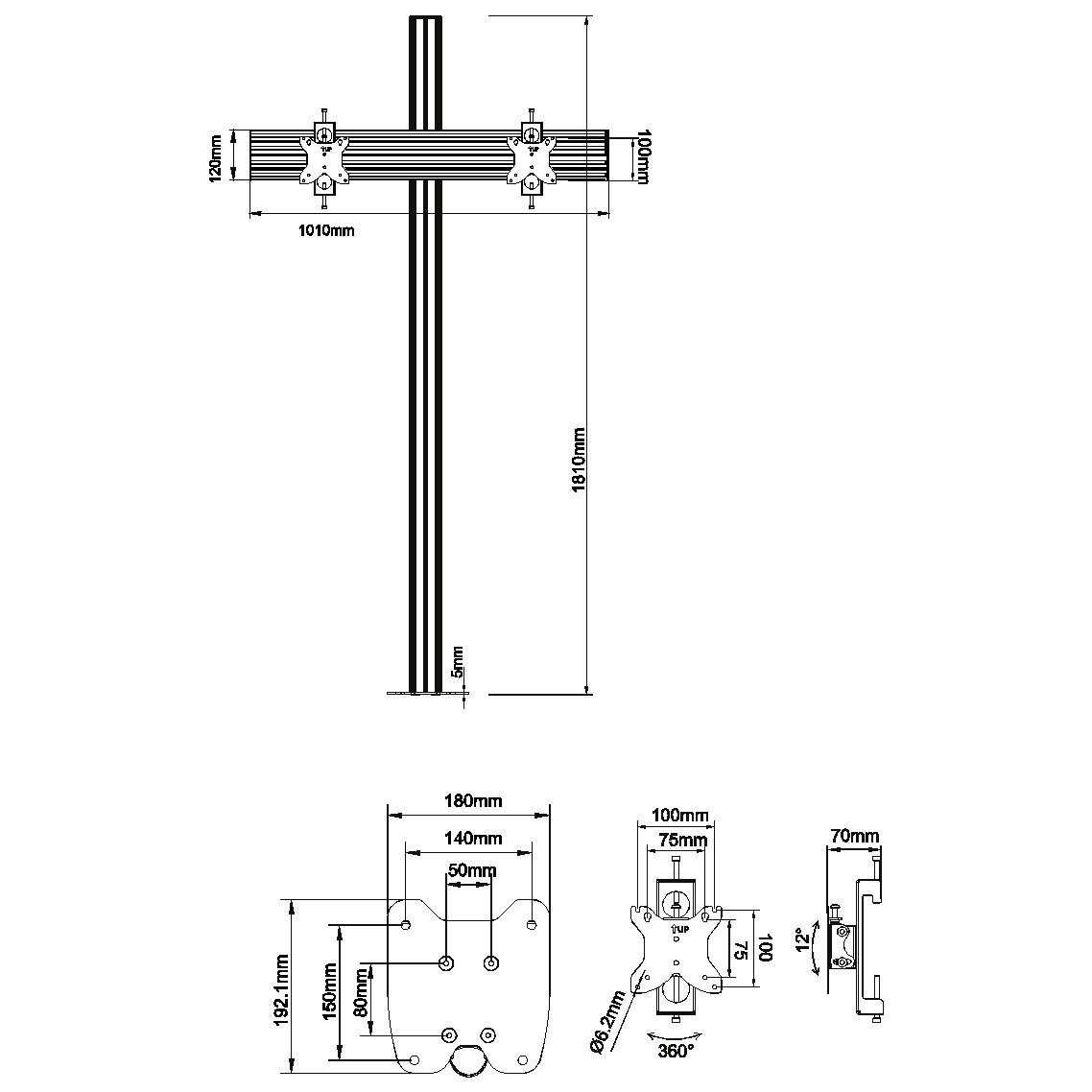 2×1 Floor Fixed Tiltable Monitor Stand Measurements: