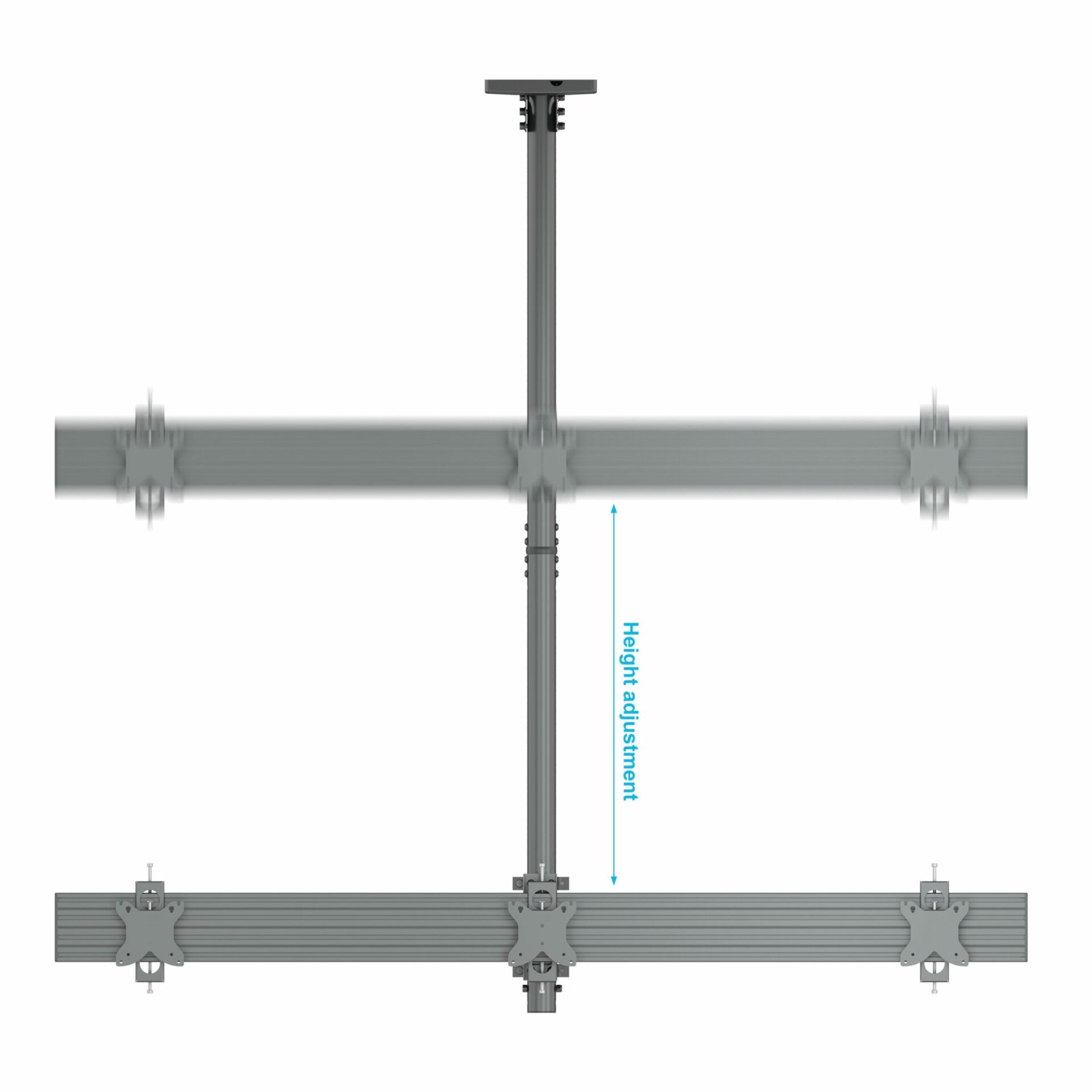 The SureMount 3×1 Ceiling Monitor Mount is a versatile and efficient solution for mounting multiple screens in either a landscape or portrait configuration. Designed for professional video wall setups, this system allows you to easily hang three screens side by side from your ceiling, offering flexibility in both positioning and alignment.