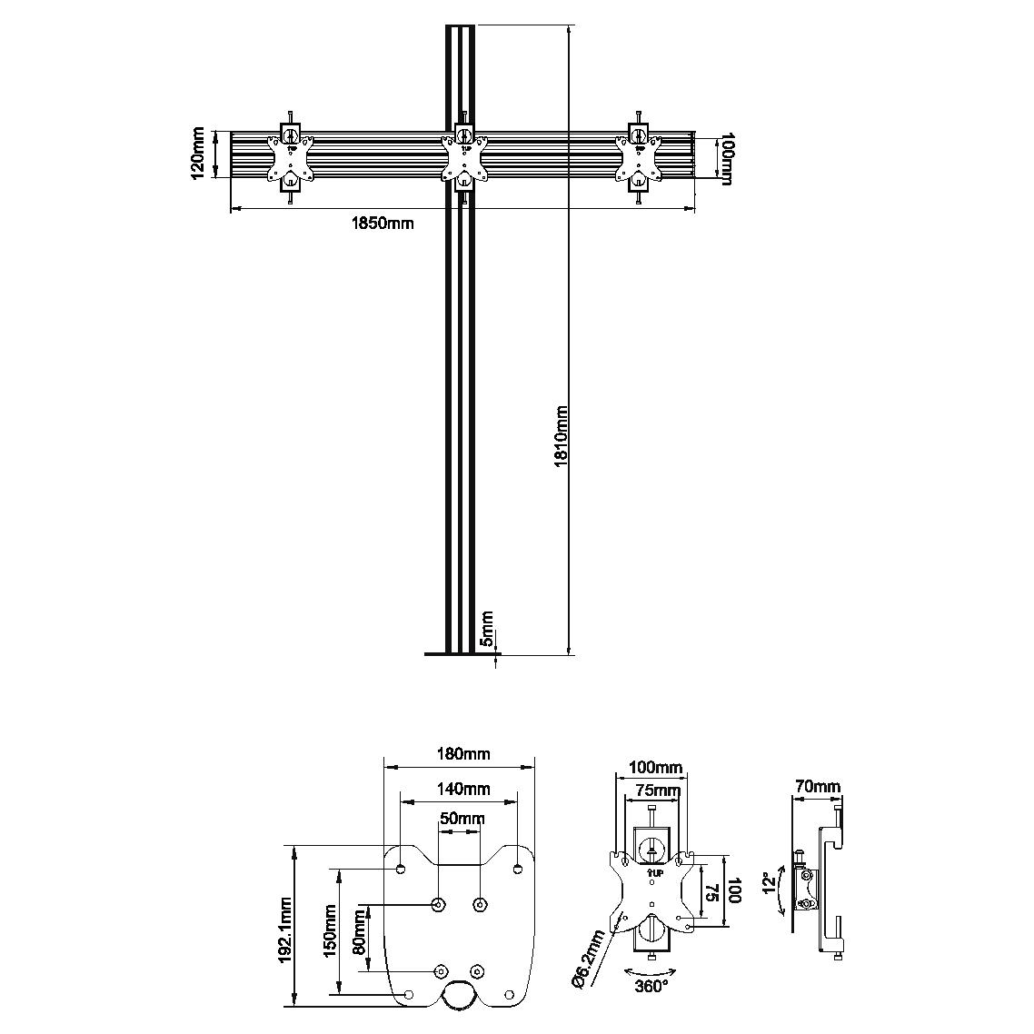 SVWMFF3x1-T100-3×1-Floor-Fixed-Monitor-Mount-Measurements