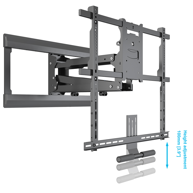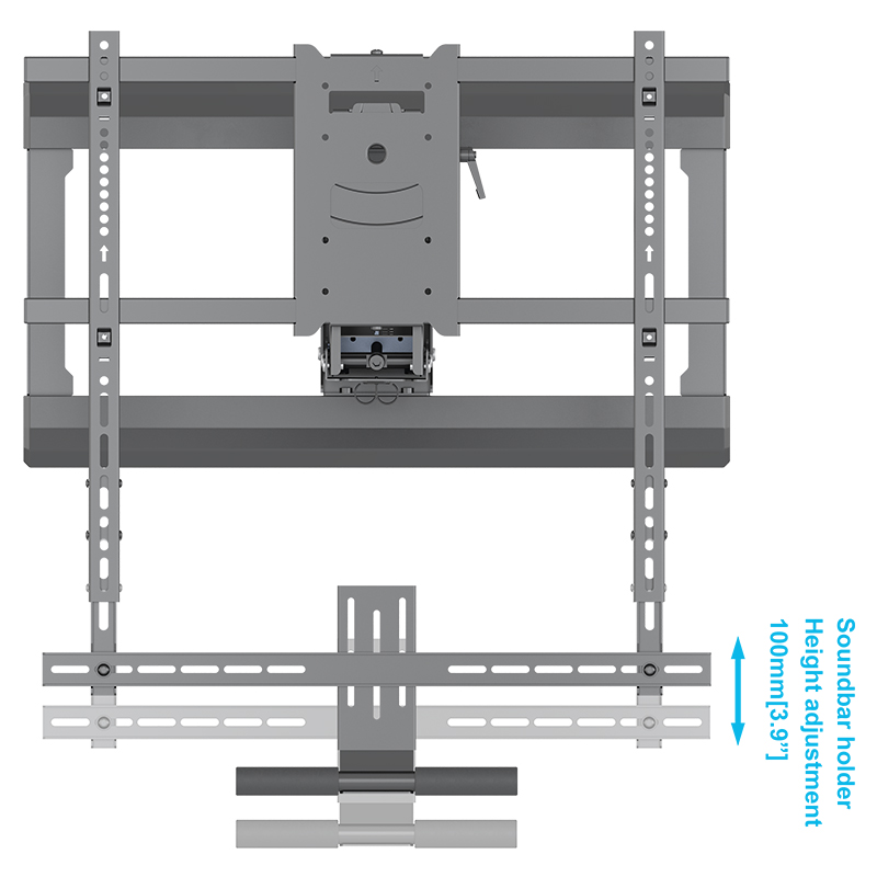 - Sound bar mounting hanger with 100mm vertical adjustment underneath the TV for rear mount sound bars (optional)