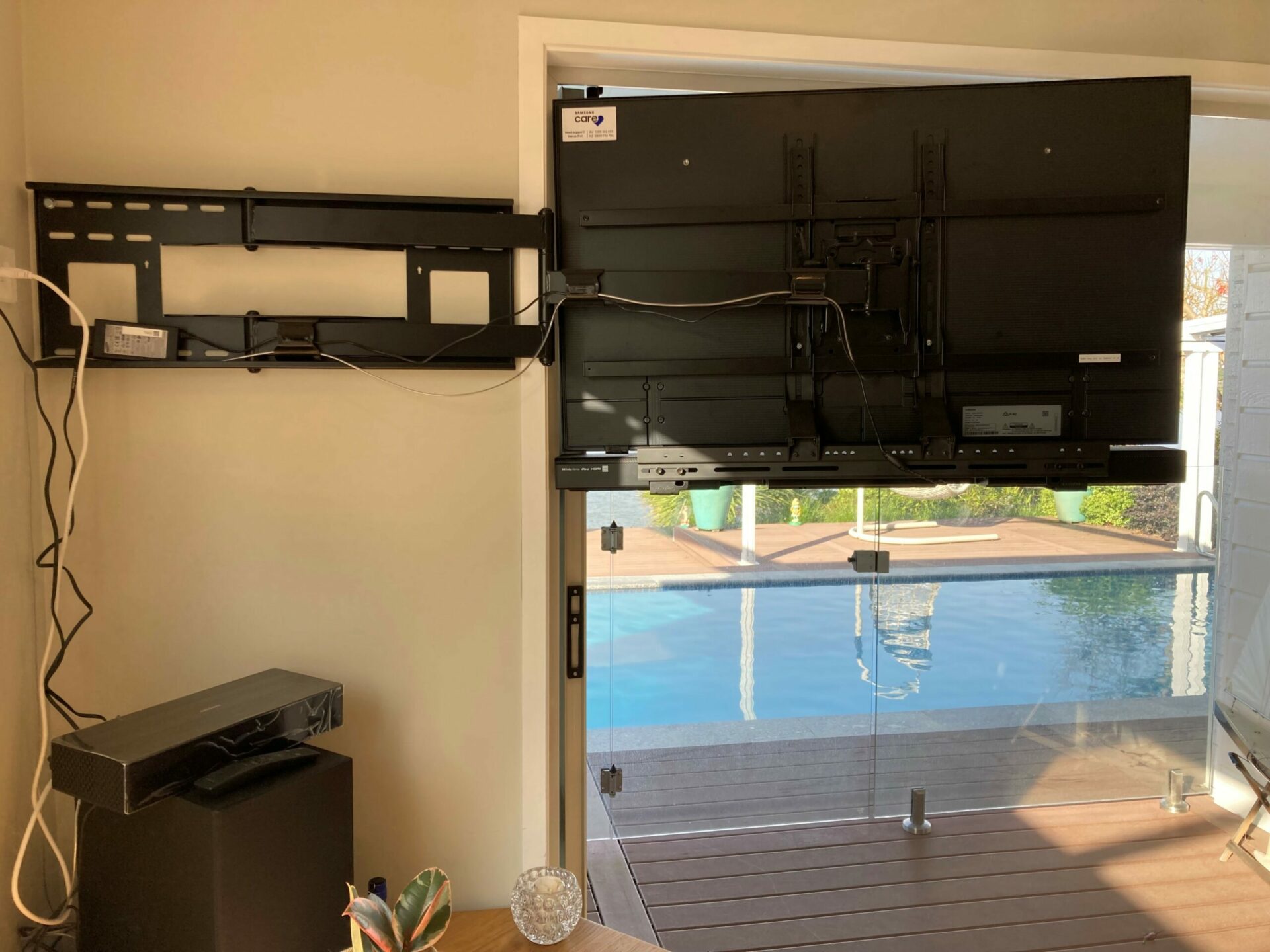 Fantastic mount. We hid the 55″ TV around the corner, then swing it out and around when we want to watch it. As far as I can tell, this is the only mount in NZ that could really achieve what we wanted.
