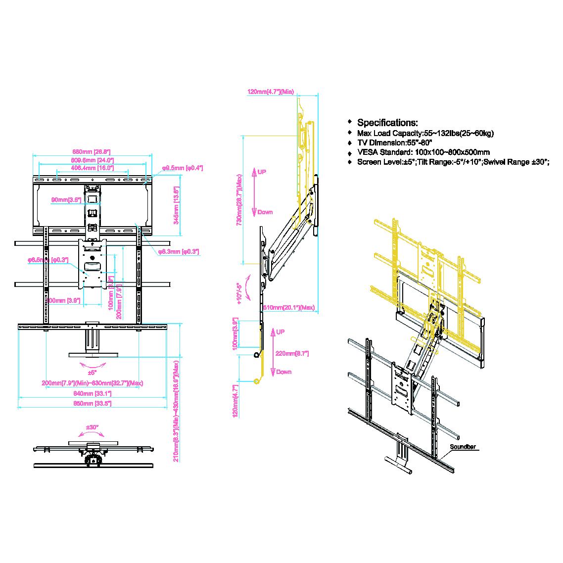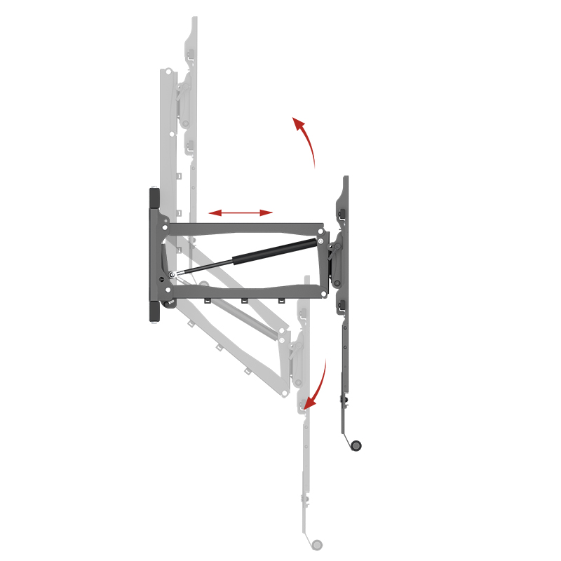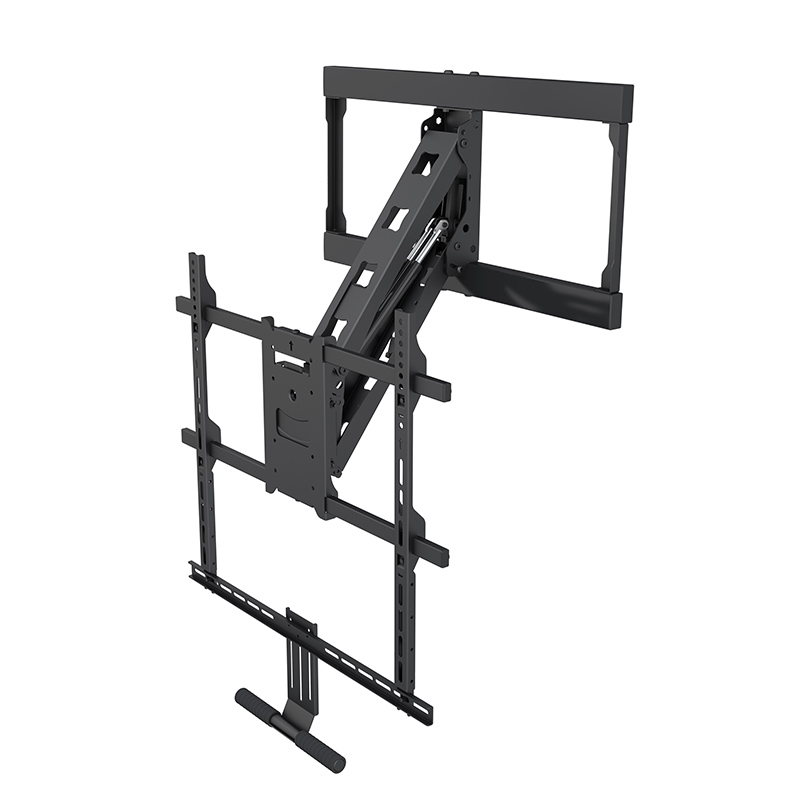We purchased this as we wanted the pull down arm feature, as we were mounting our new 65 inch Bravia TV over the fire place. Shipment was relatively quick and the product was as indicated. The arm function works well and the TV goes back up nicely. Few things to note – if you are mounting over a fireplace/heater – check the height of the TV while in the shop. This will affect placement on the wall above the fireplace, particularly as your TV may end up hitting the ceiling if you haven’t taken this into account. The another thing to be mindful of is the bottom mounting bracket. Those looking for a more “aesthetic look” may not like the fact that this bracket is visible when the TV is pushed back up against the wall. This wasn’t an issue for us – but others may want to consider a sound bar to mount under the TV to hide the bracket. Also check there is sufficient blocking in the wall to hold the TV and the mount, especially if you will be moving it a lot. And one final thing – if you are not installing this yourself and getting a third party to do it- check they know what they are installing, as the our installers got very antsy when trying to work out how it all went together as they had only installed the swing out arm type of wall bracket.