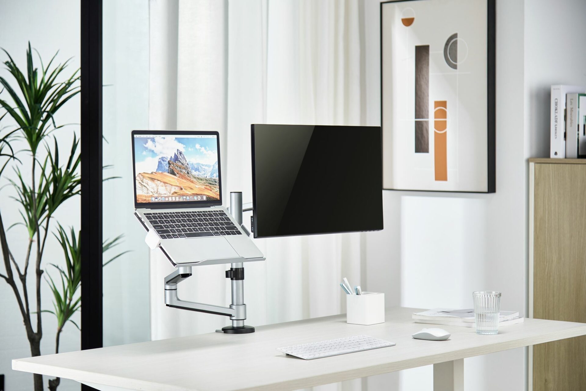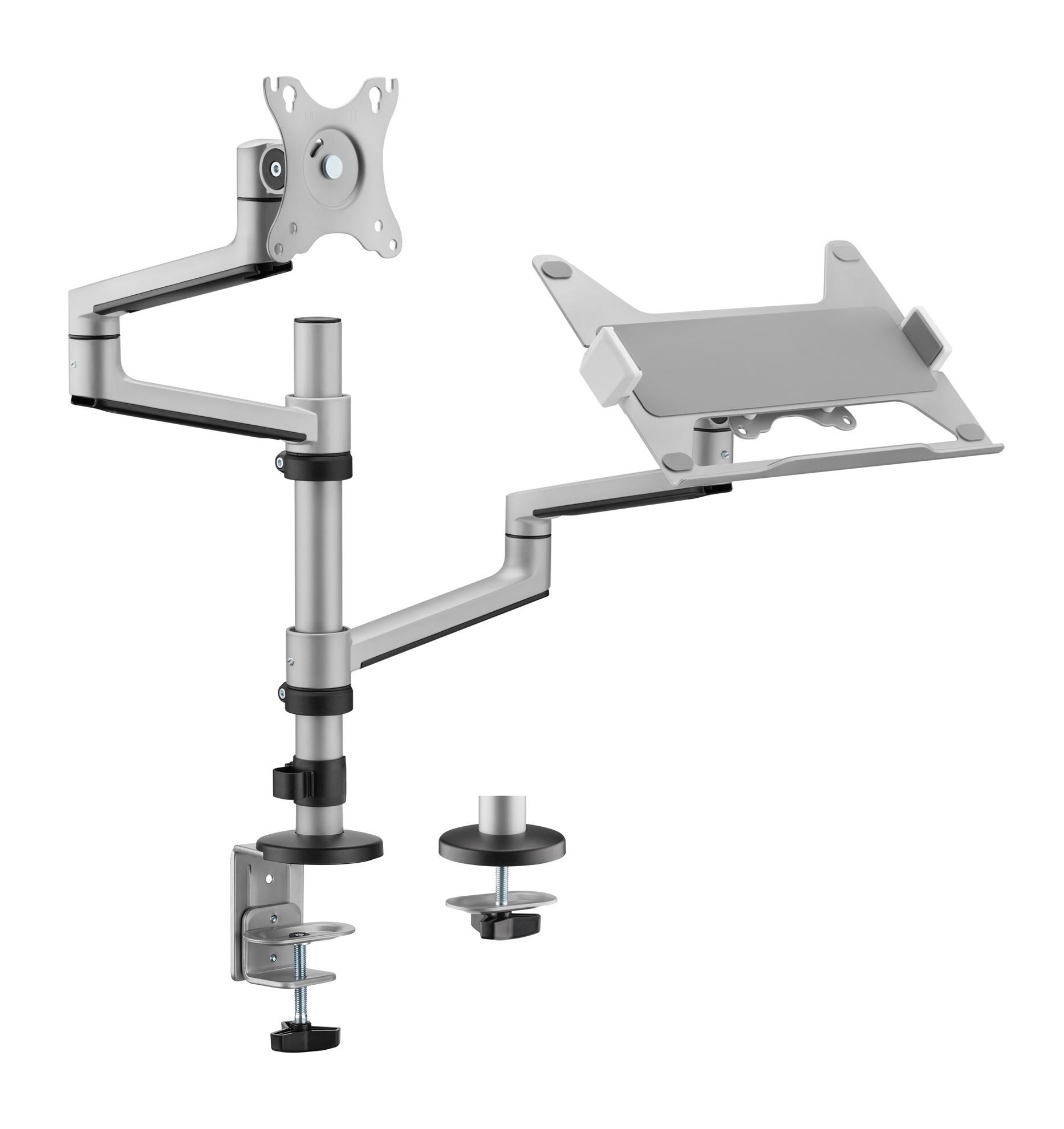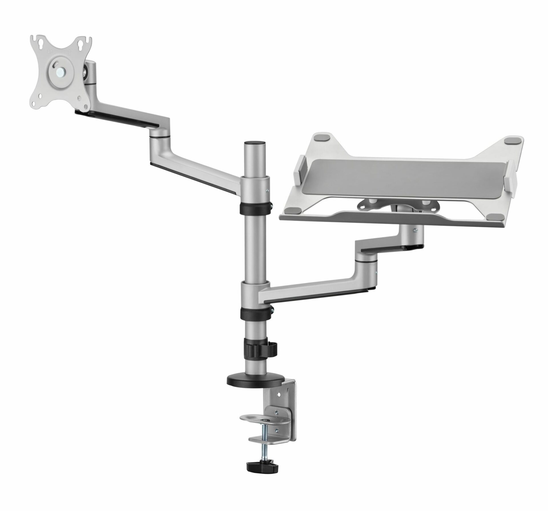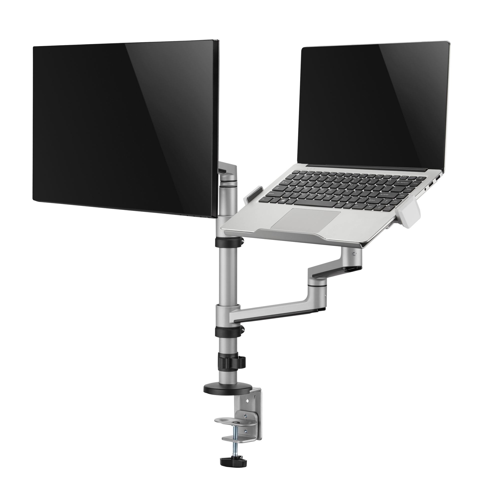 The LDT72-C024ML is the ideal partnership for the modern home office. Suitable for mounting up to a 32″ screen, the additional non-slip laptop tray makes this elegant and stylish product a must for any home or business environment. The strong adjustable claws ensure that your 12″-17″ laptop is kept safe and secure. Matte Grey Colour.