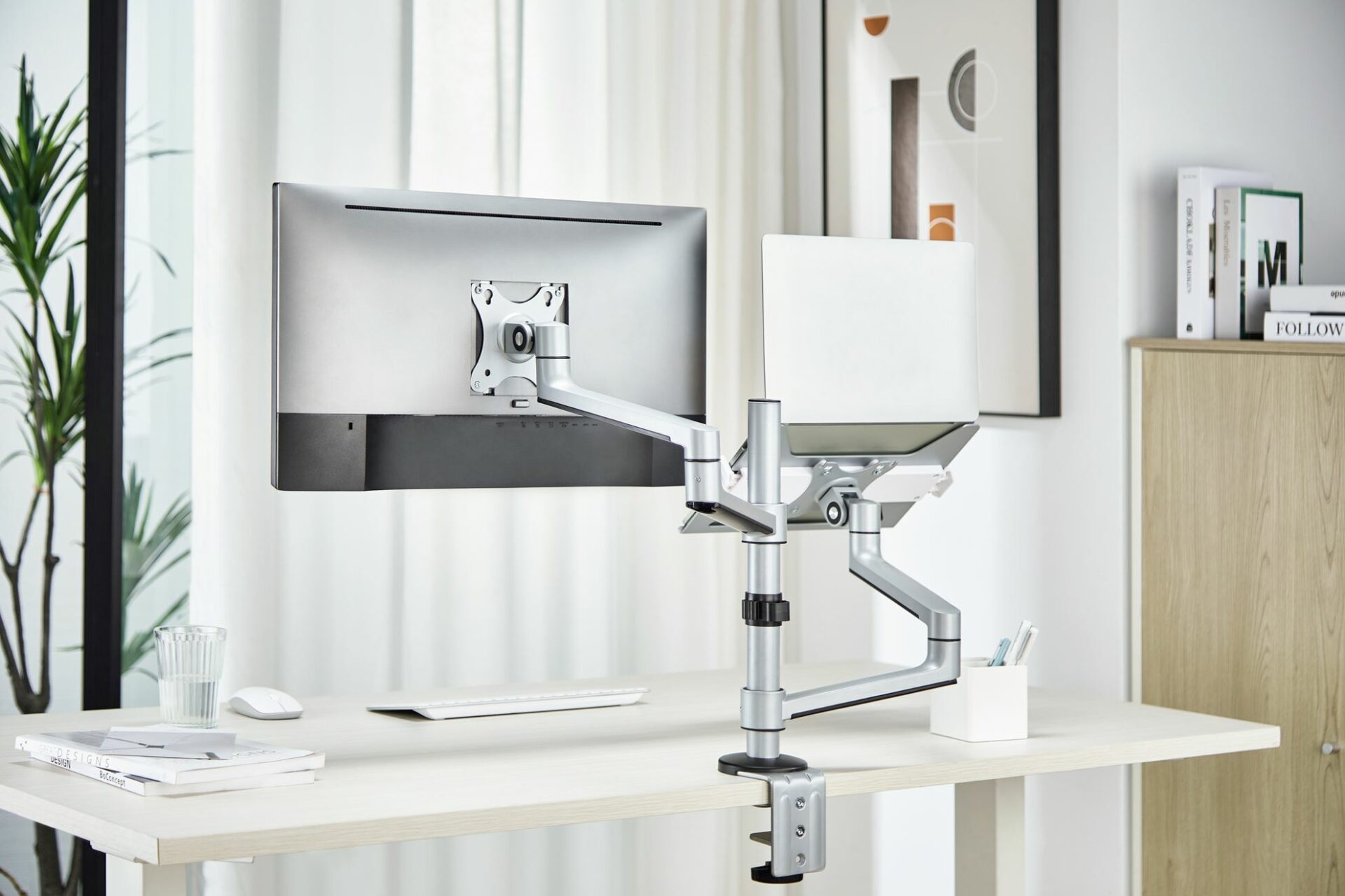 BRATECK 17″-32″ Dual Arm Premium Articulating Monitor Arm & Laptop Tray