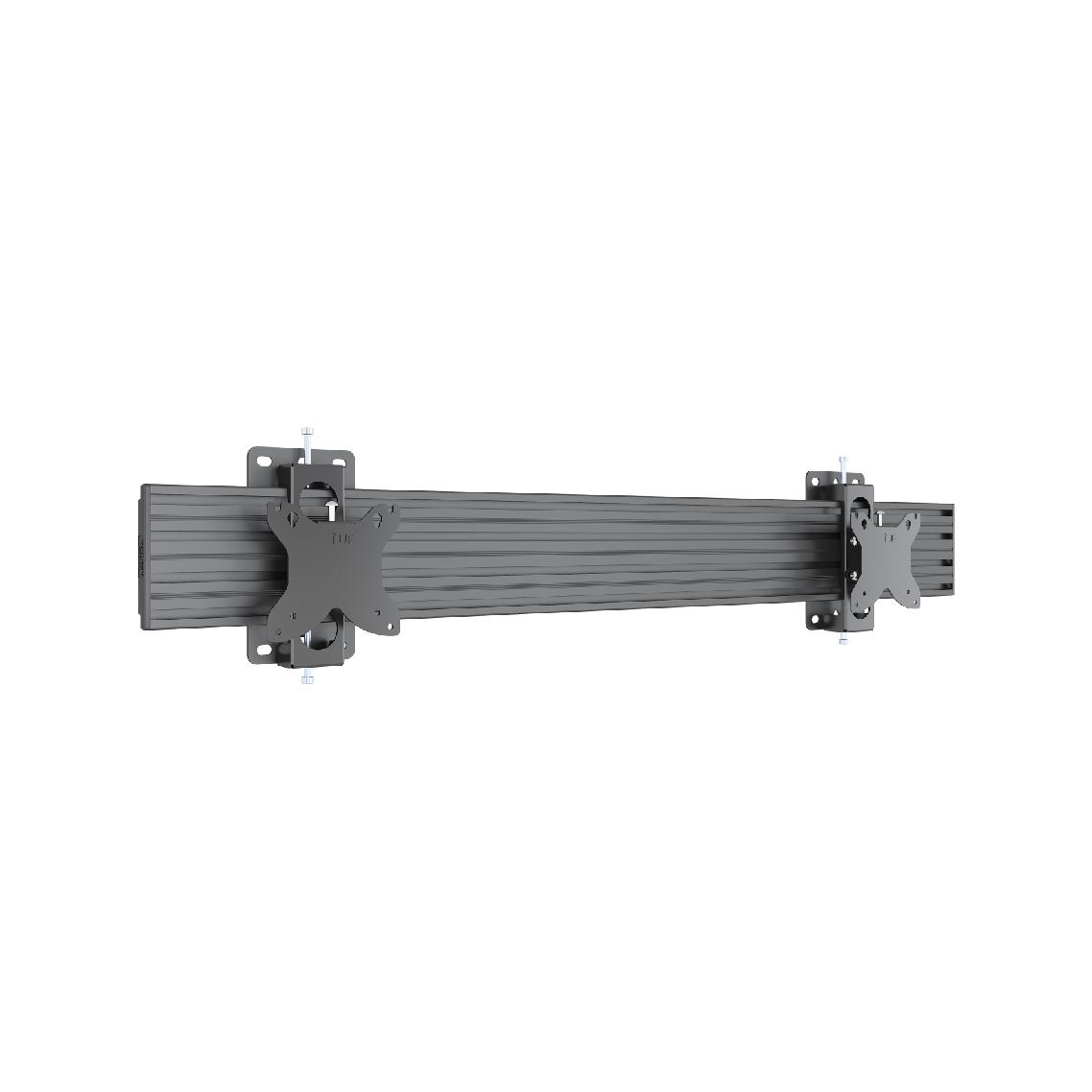 The SureMount dual monitor video with tilt mounts allows you to mount two screens in a side by side (either landscape or portrait) setup. The Tilt TV Arms clip easily onto the Aluminium Rails to make adding or removing screens a breeze. Specifically designed for menu boards at fast food outlets the 10mm micro adjustment levelling and adjustable tilt (+/-12°) gets your video wall at the optimal customer (and staff) viewing angle. Simple, strong and sturdy the SureMount dual screen system is a must for every professional video wall solution. Screens can be mounted in portrait or landscape mode.