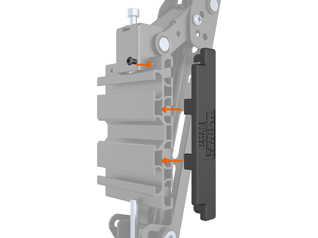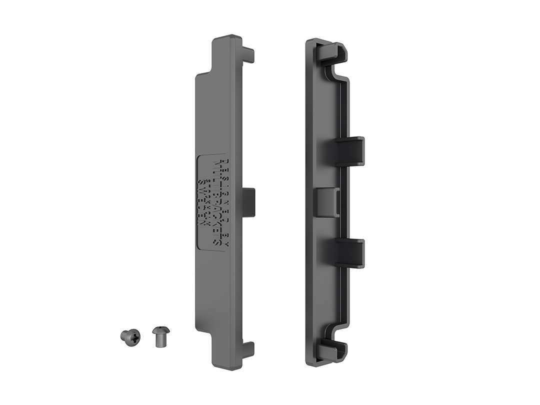 - Support rails can be extended to fit more screens and the end caps are attached to either end