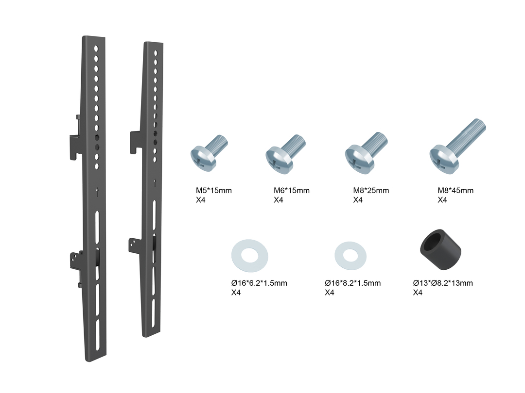 The SureMount Video Wall Fixed TV Arm clip easily onto the Aluminium Rails to make adding or removing screens a breeze. Used in combination with the aluminium rails and wall brackets you can build a video wall to suit your needs. The Video Wall Fixed TV Arms are suitable for small screen solutions where there are only a few screens and the micro adjustment of the other TV arm options are not required. Simple, strong and sturdy the SureMount multi screen system is a must for every professional video wall solution. Simply attach the arm to the back of your screen and you are ready to go.
